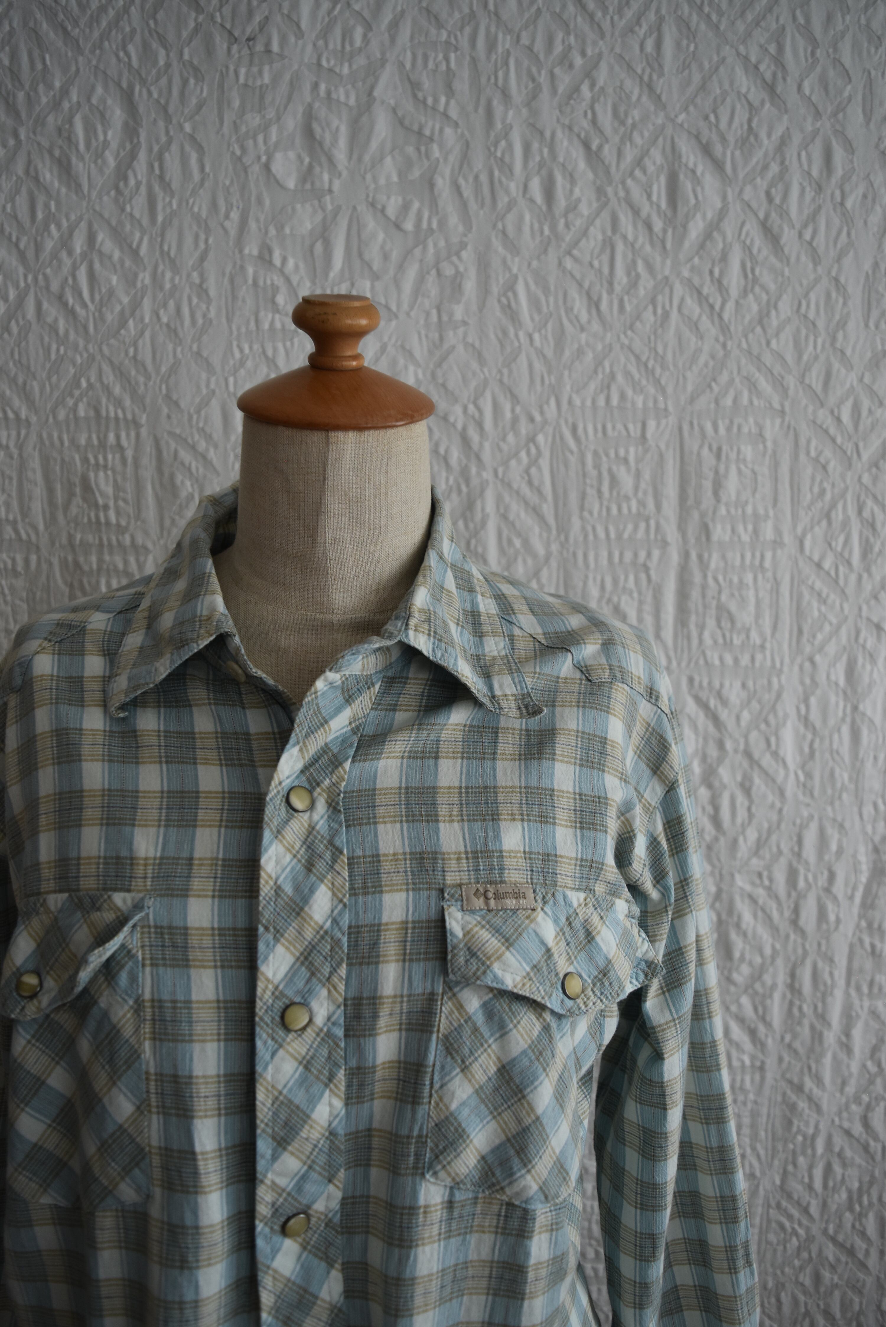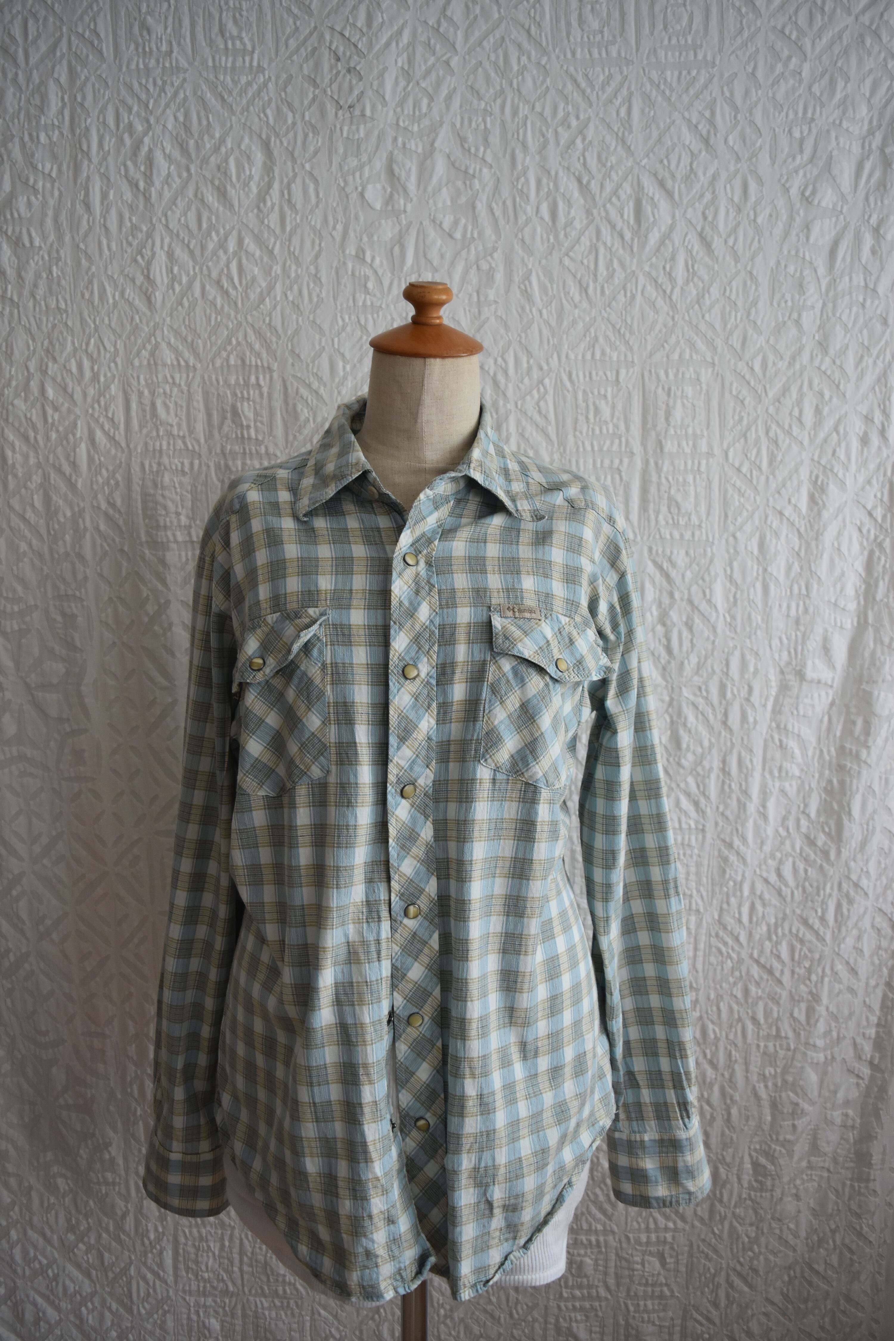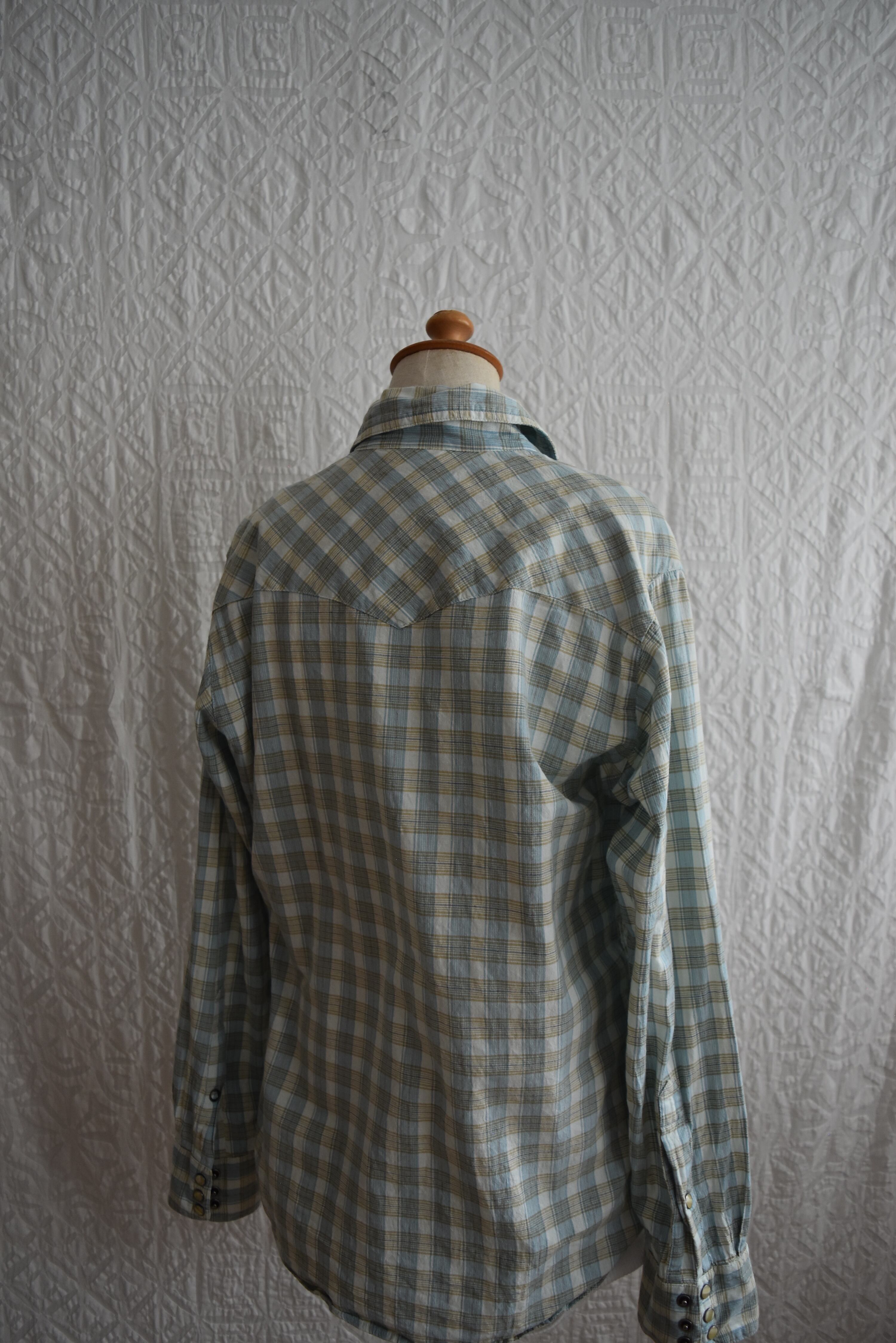 ウエスタンのようなデザインのシャツ。ボタンも可愛いです!薄手なので、長いシーズン着用可能です◎