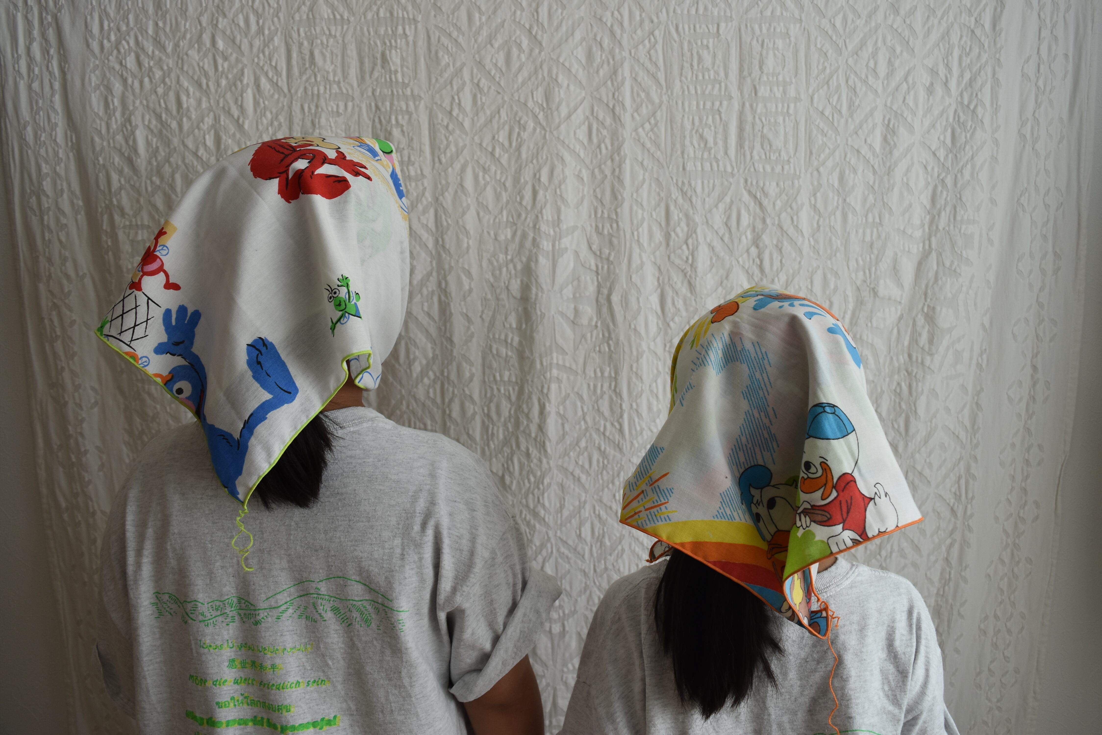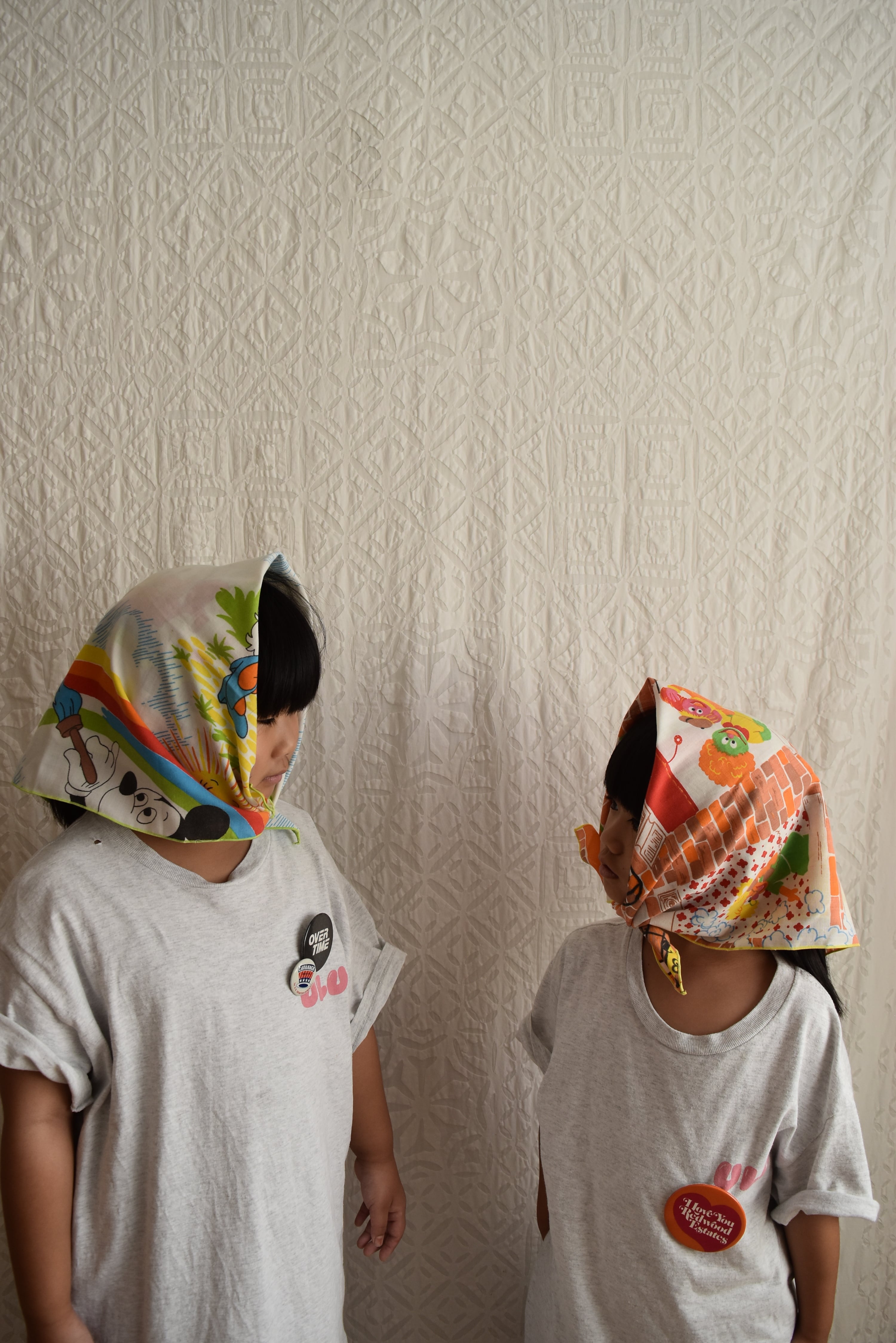 ビンテージのキャラクターシーツを使用して製作したバンダナ!大判すぎずサイズ感もいい感じになっています⭐︎頭に巻くのはもちろん、ベルトループに引っ掛けたり、マルチクロスとしてお使いいただけます!uluタグも付いていてアクセントになってます◎大人も子どもも一緒にお使いいただけます❤︎