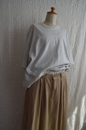チノフレアスカート。柔らかい生地感でウエストも大きめ。ベルトループありなのでぎゅっと絞っても履いていただけます。ルーズなソックスをチラッと見せる半端な着丈で履くと可愛いです◎