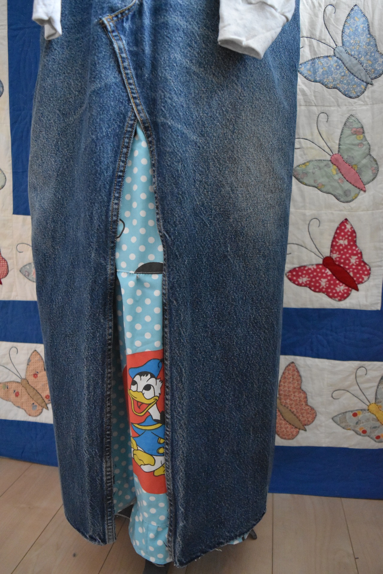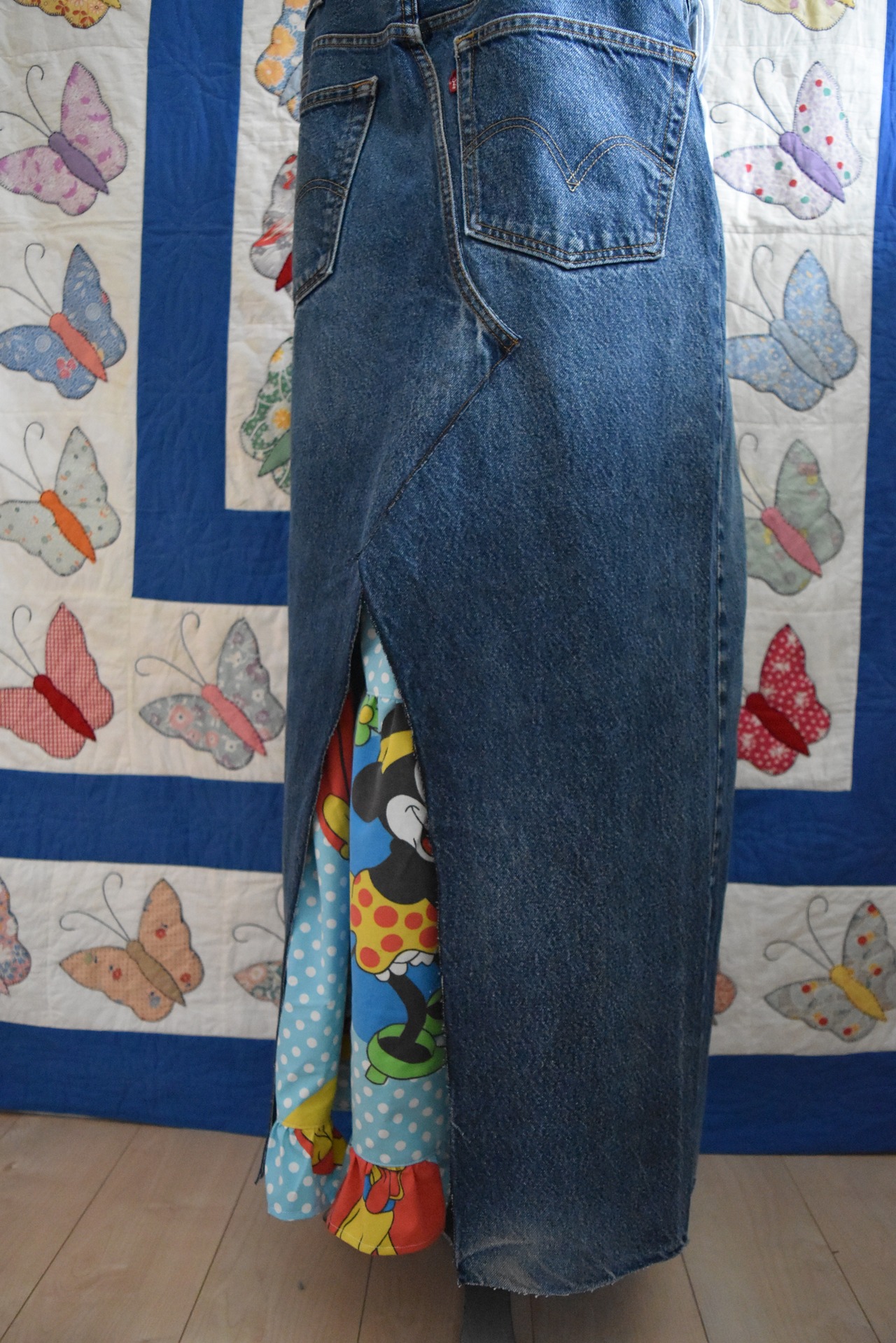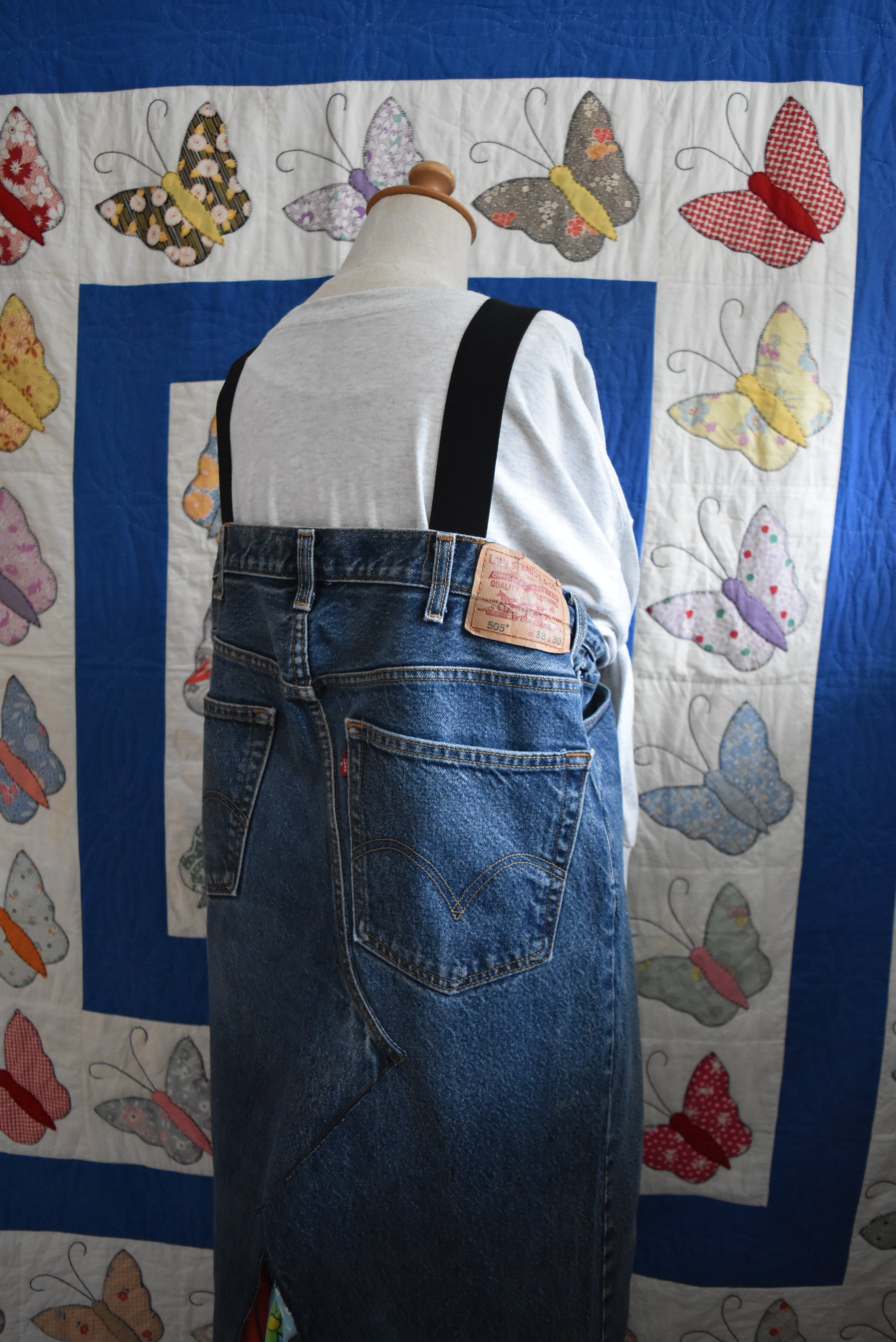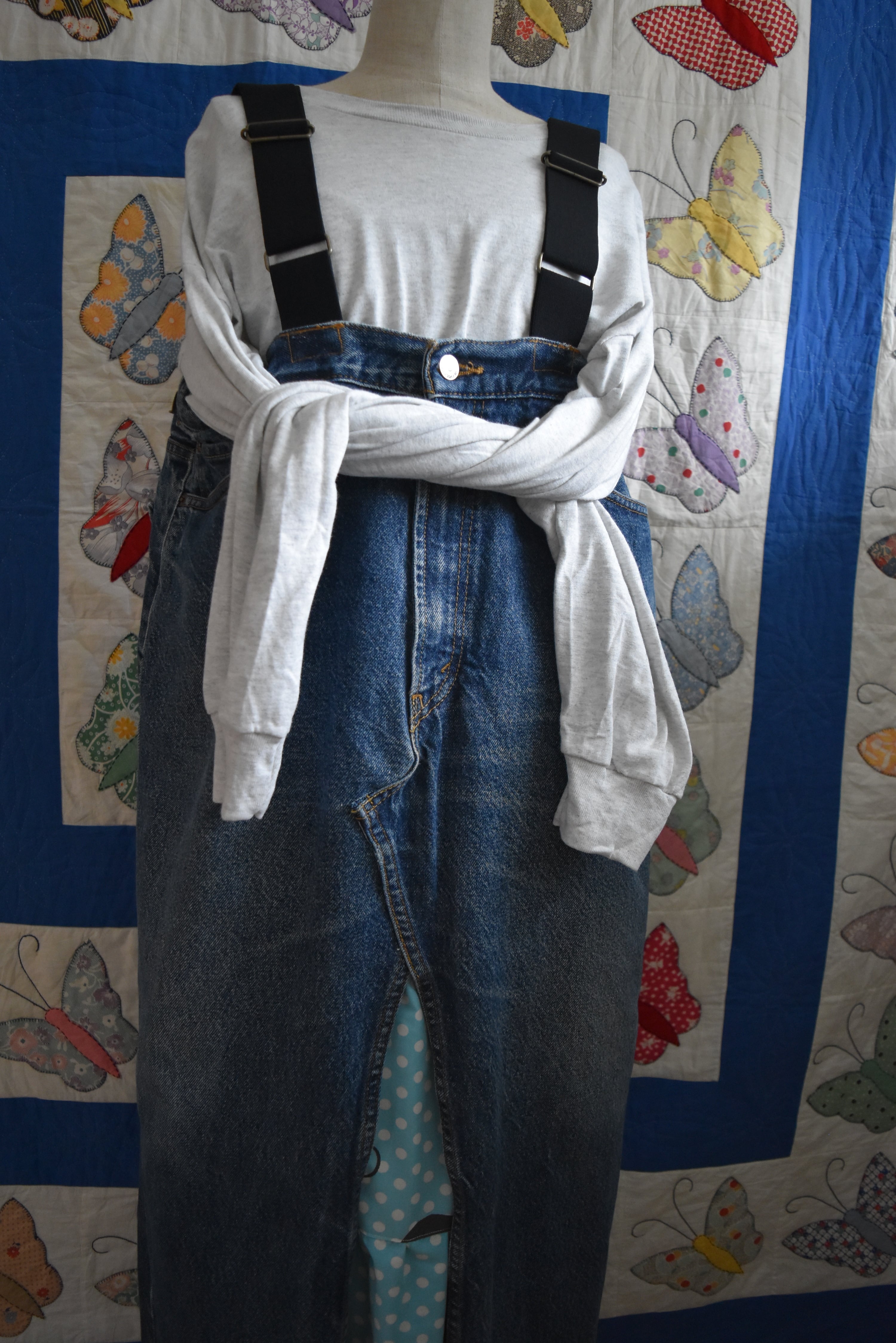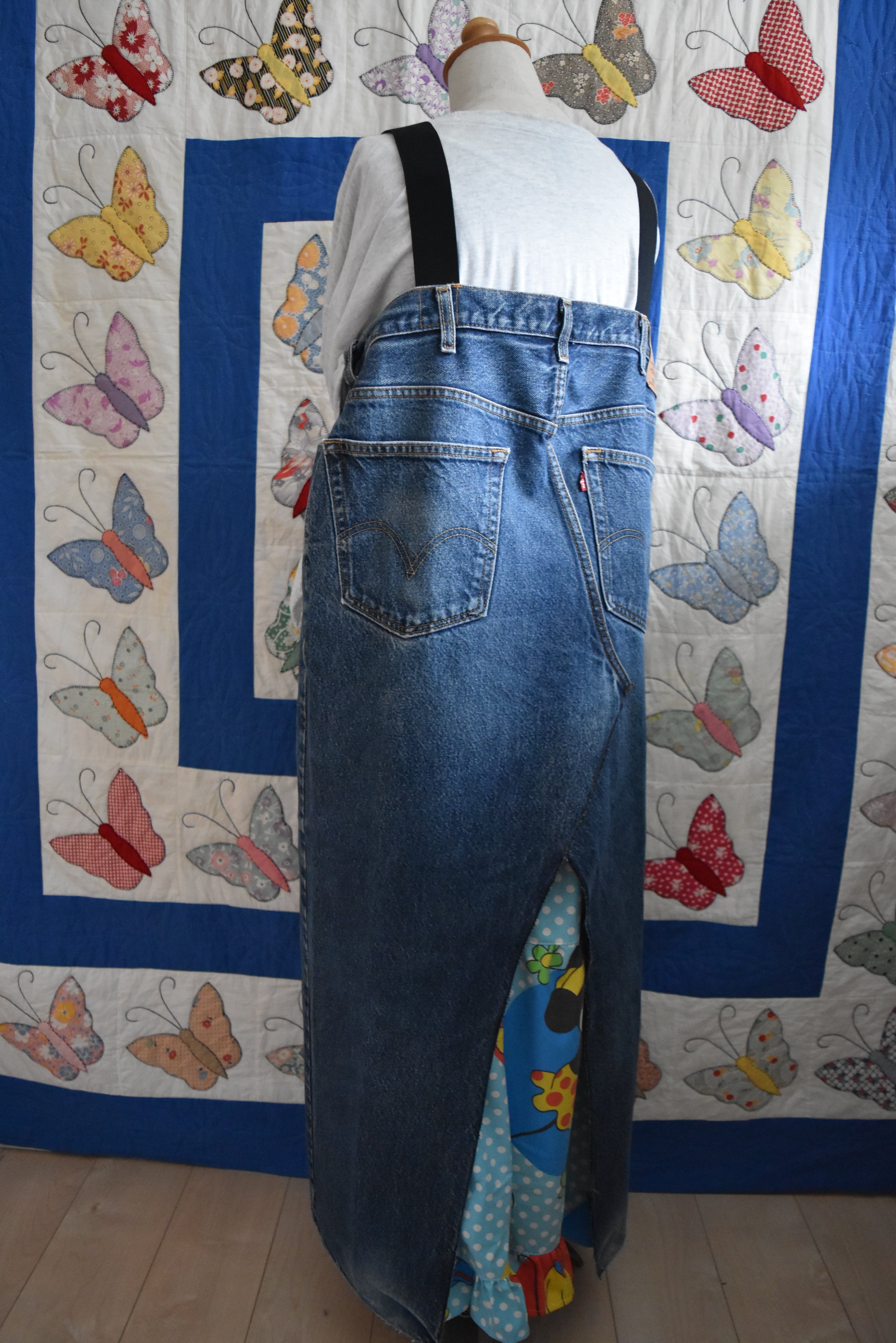 リーバイスデニムのビッグサイズをリメイクして製作したスカートです◎