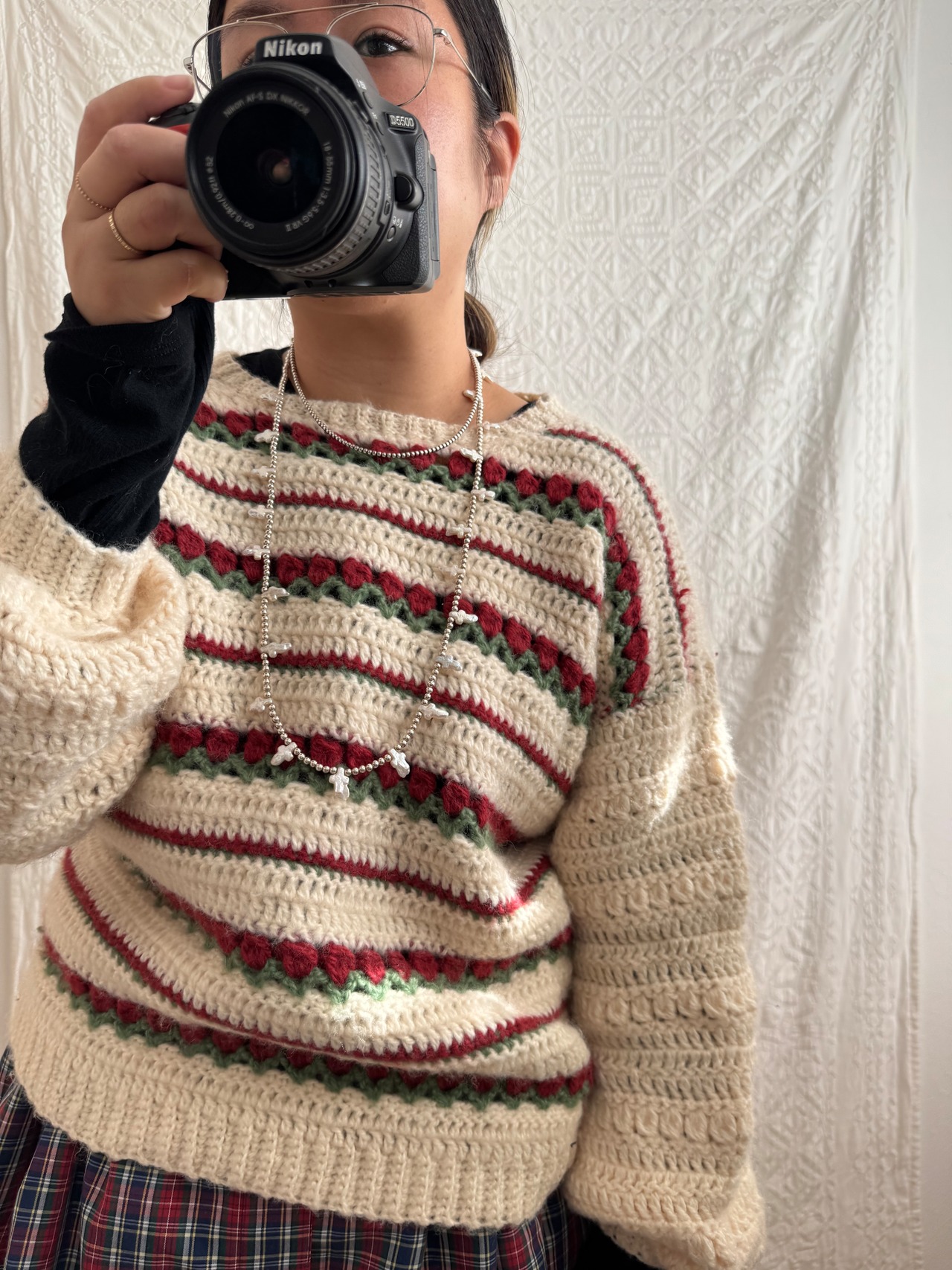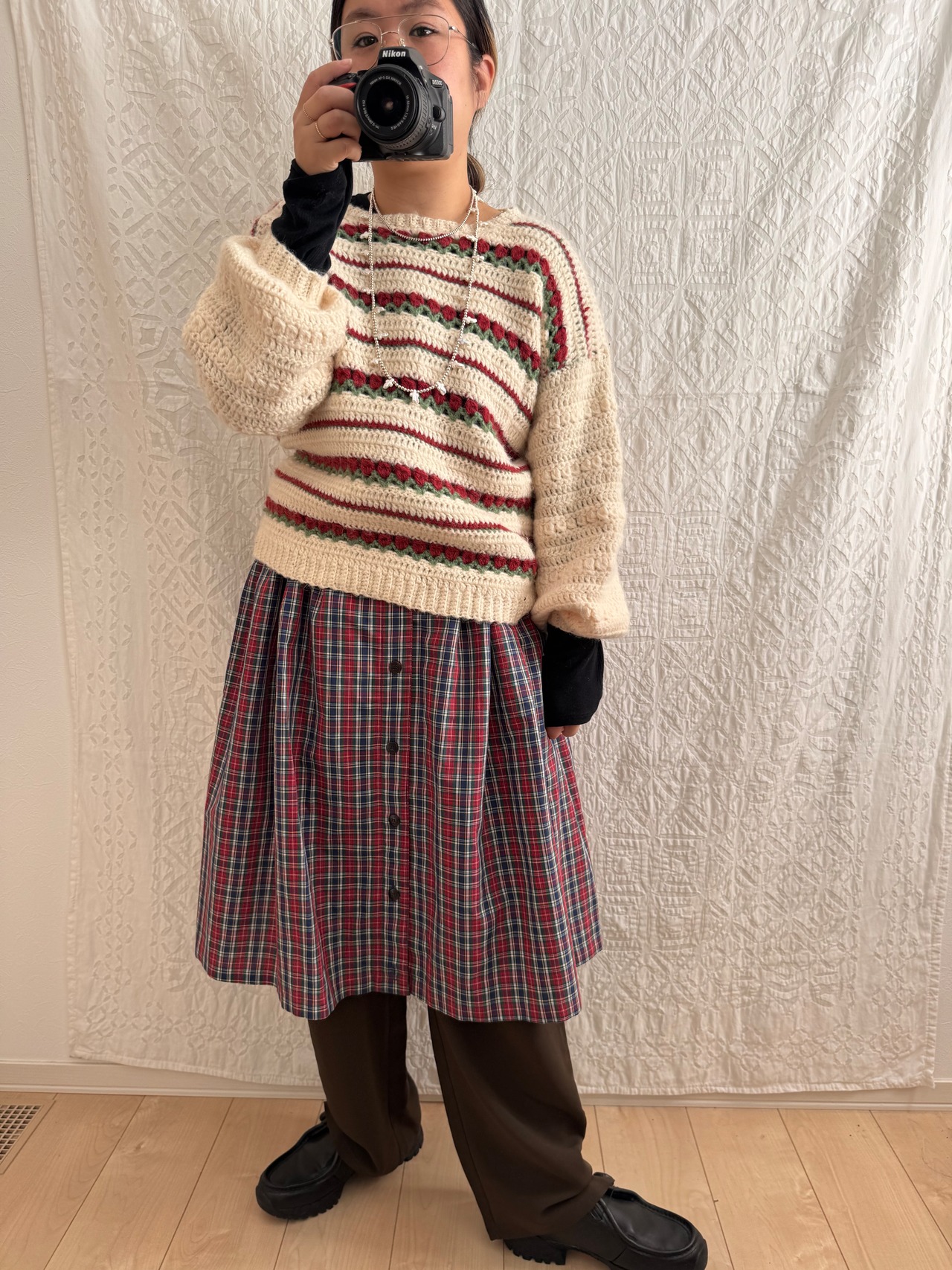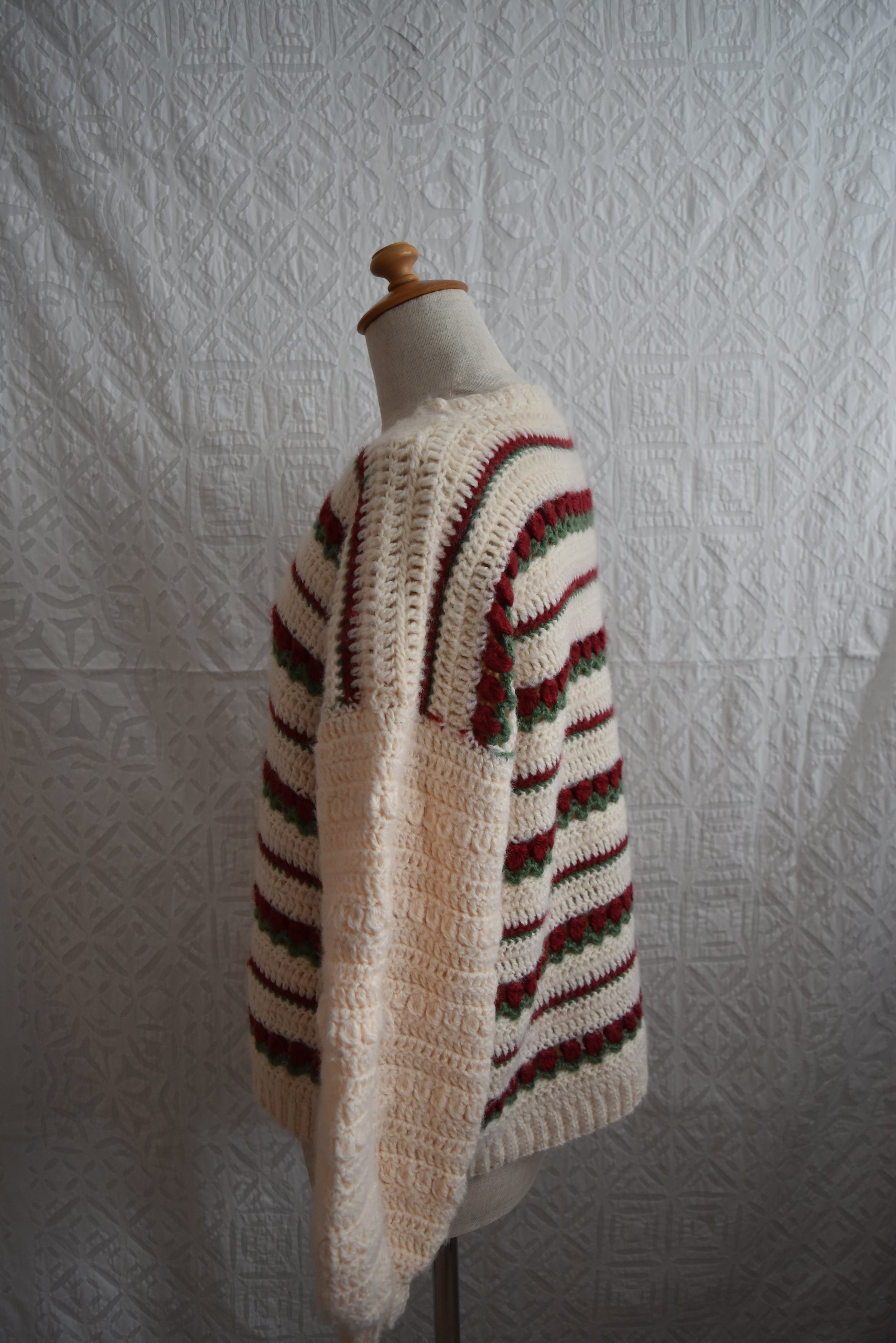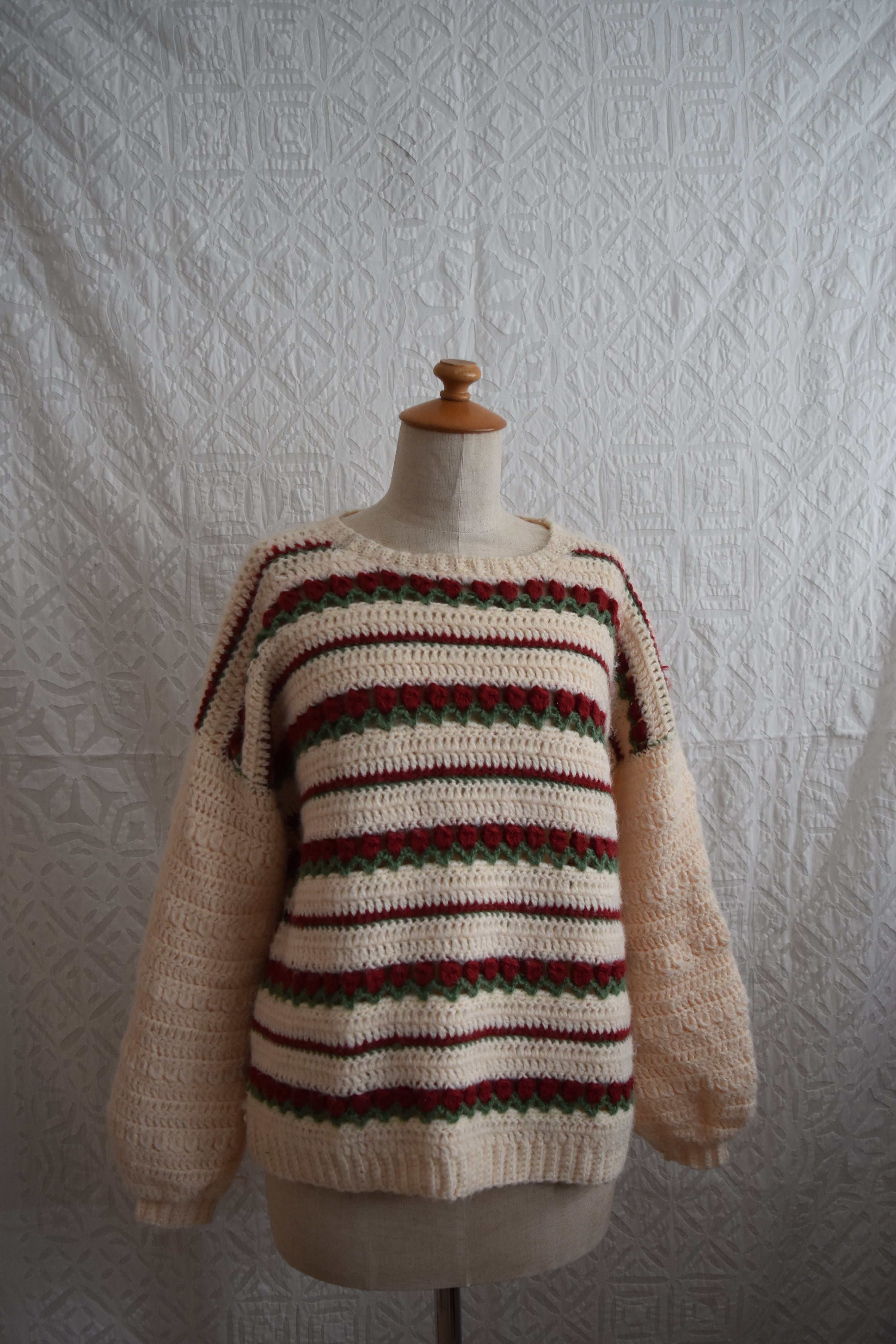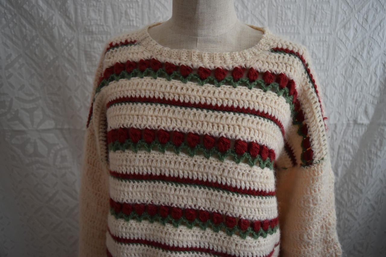 チューリップのような柄のハンドメイドニット。ホワホワしていてとっても可愛い!