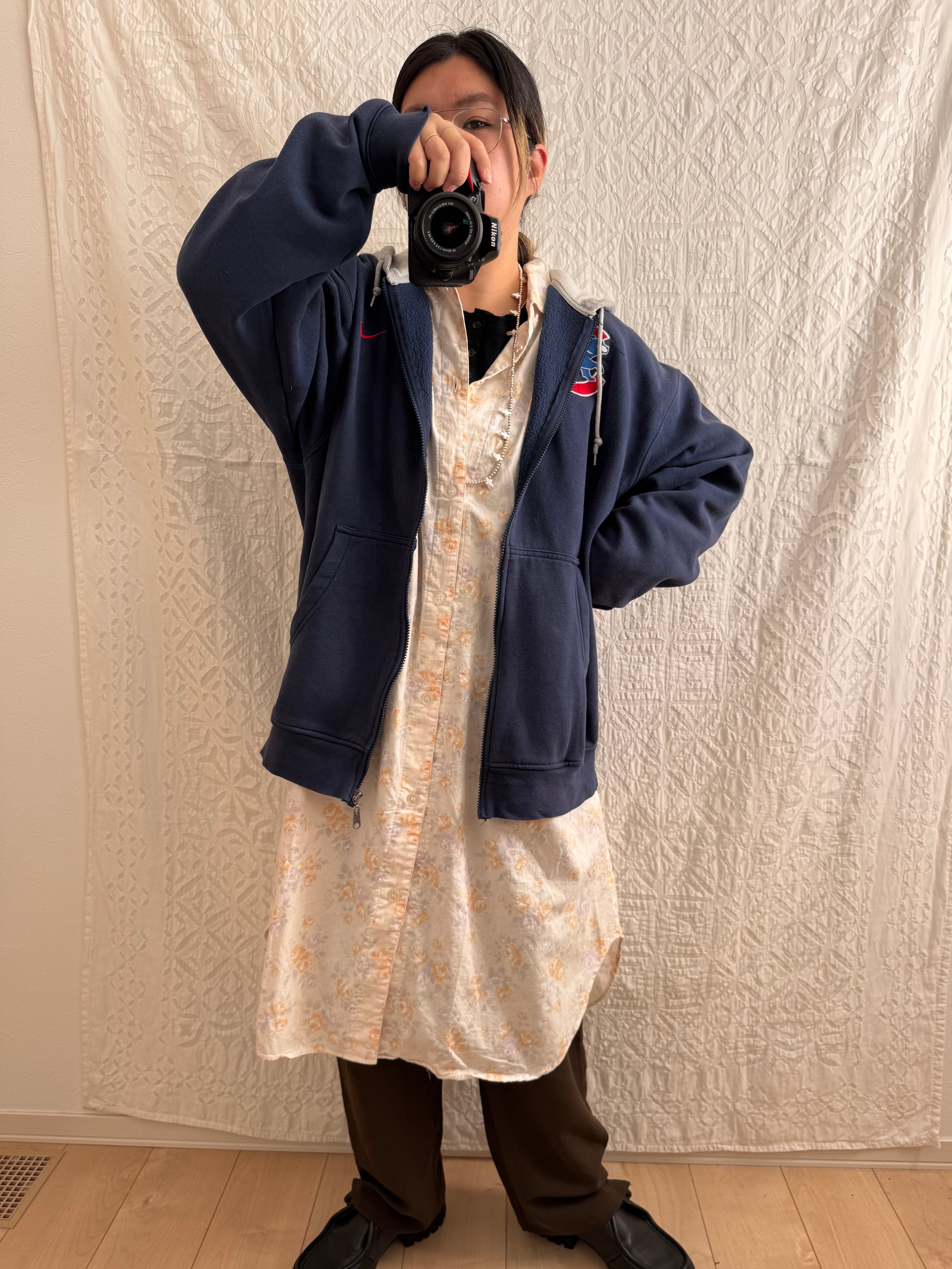 とっても柔らかくて肌触りの良いジップアップスウェット。フードも付いていて、デザイン良いです◎ラブリーなスタイルの外しにも使えそうです!
