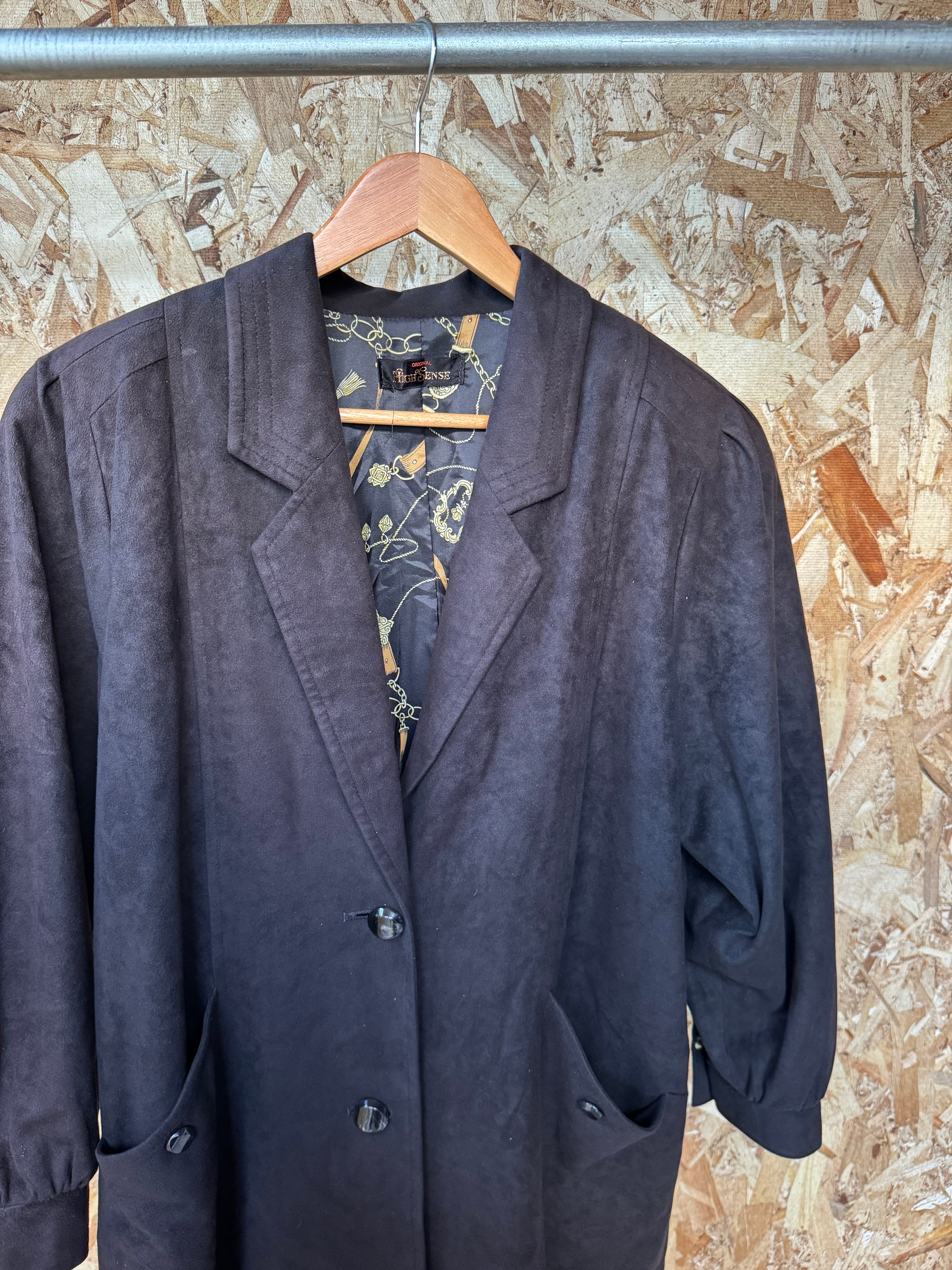 スエード生地の柔らかくて軽い着心地良いジャケット。肩パッド入りで、肩周りのステッチデザインが可愛いです◎