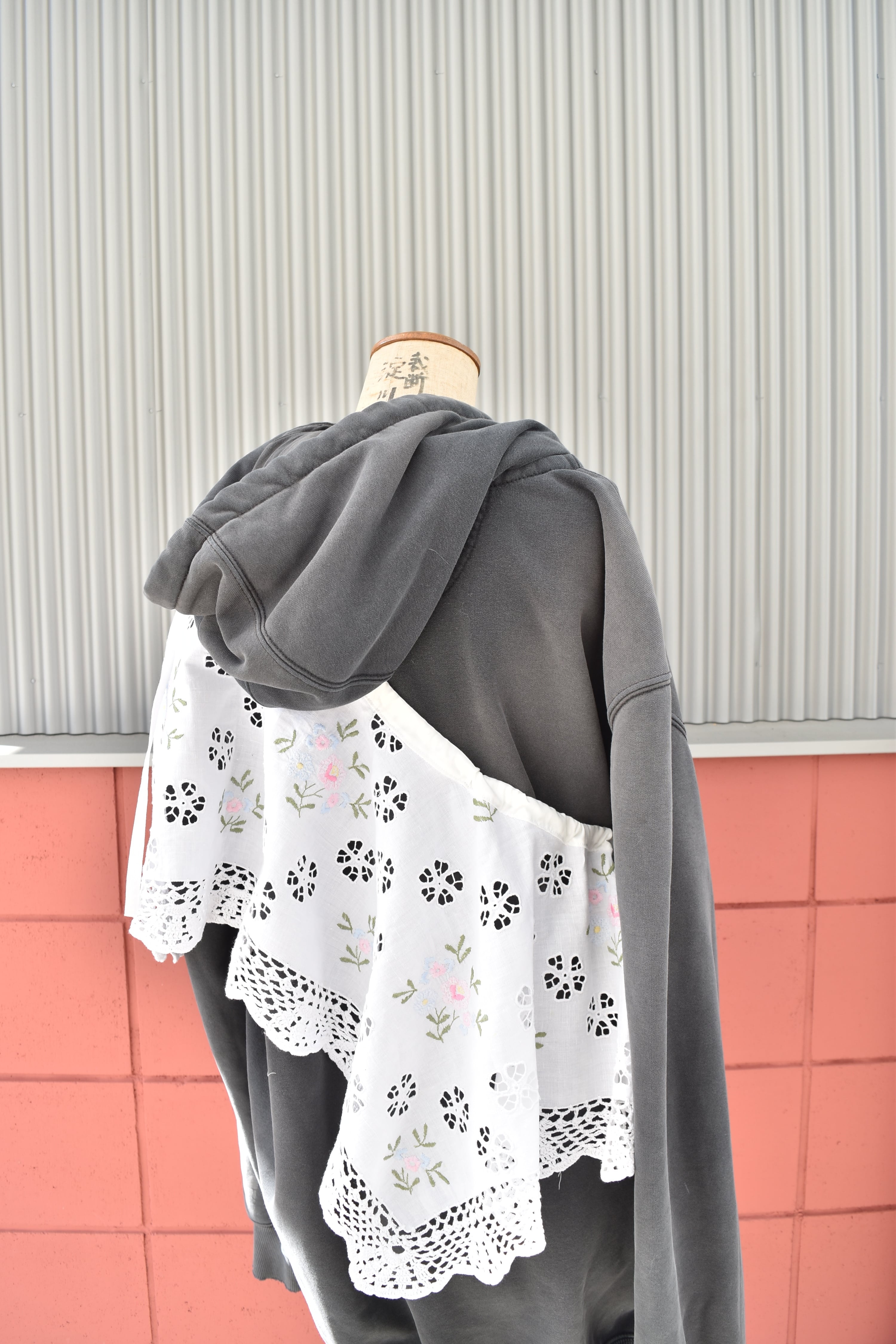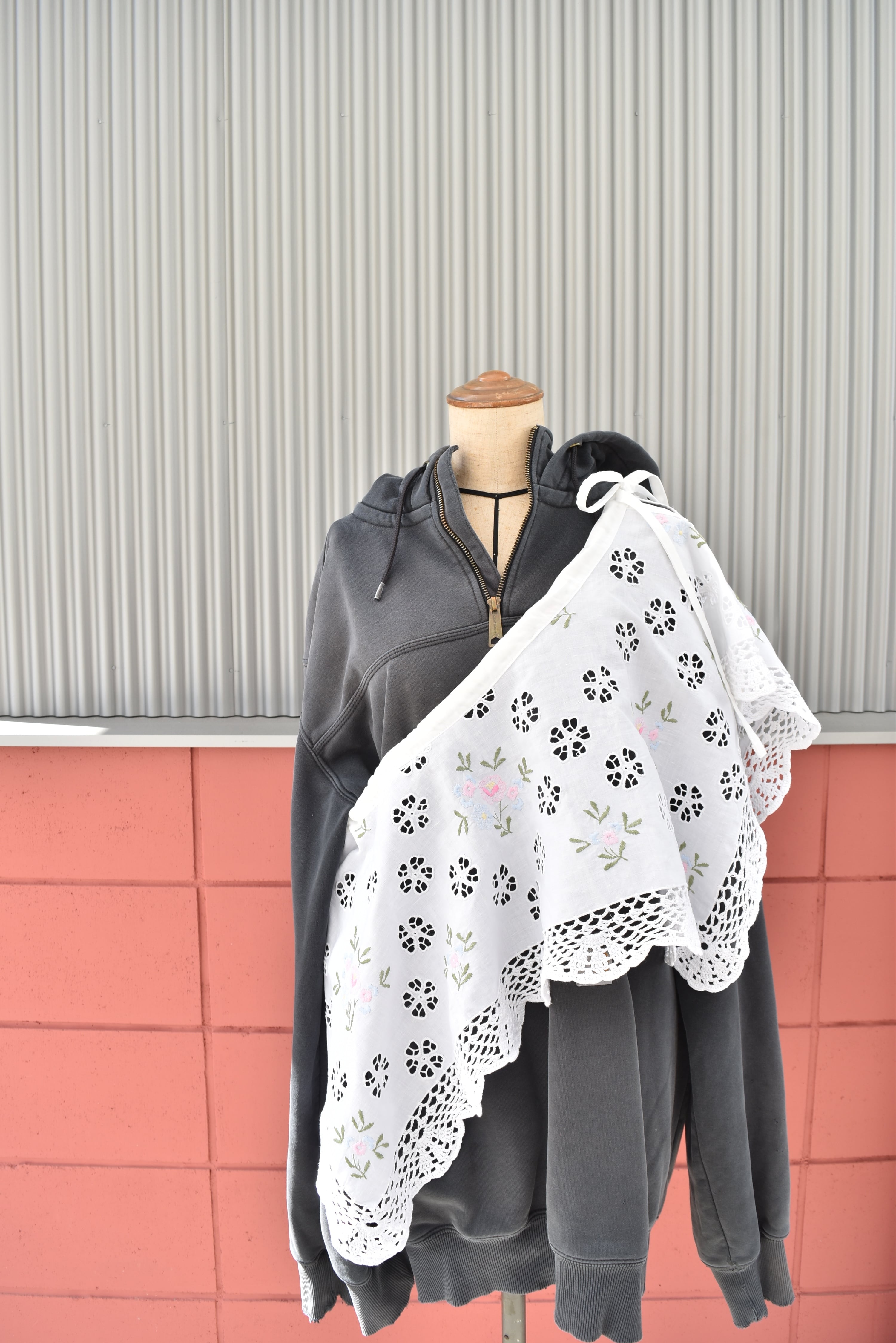 ビンテージのクロスをリメイクして作ったマルチクロス。カットワークの透かしがとても可愛いです!