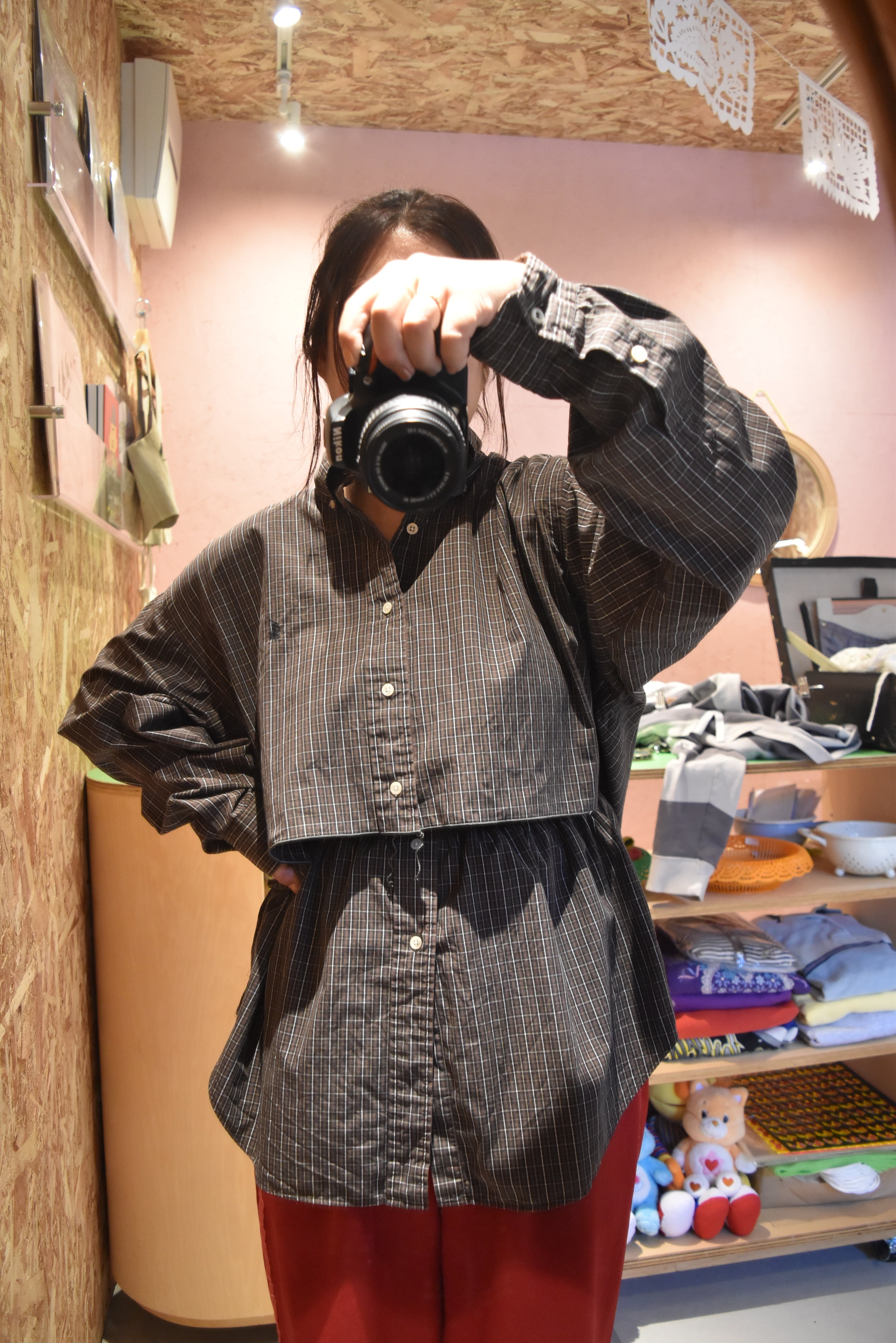 ビッグサイズのシャツをショート丈にし、どんな体型の方にもバランスよく着れるようなgood itemです◎